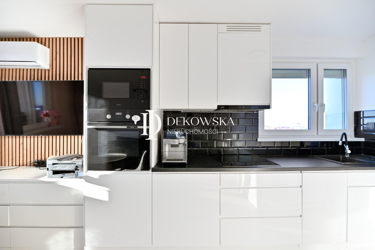 - kuchnia z pełnym wyposażeniem AGD (piekarnik, płyta indukcyjna, okap, zmywarka, lodówka).